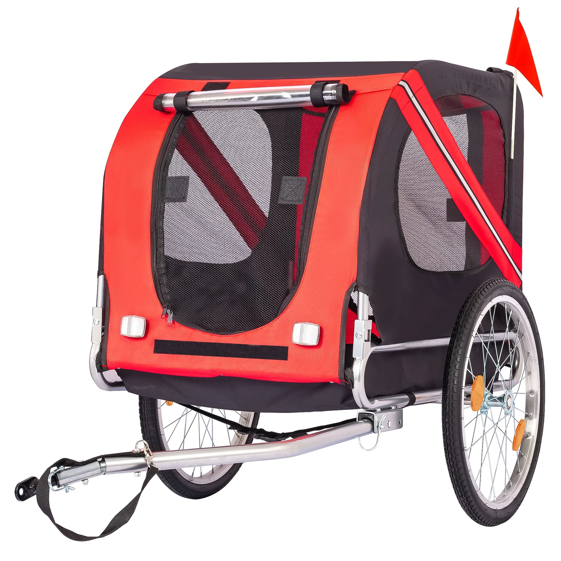 - Fast, tool-free setup and universal fit: attach to road, mountain, or hybrid bikes with a simple hitch—no extra tools needed—and secure safety tethers.