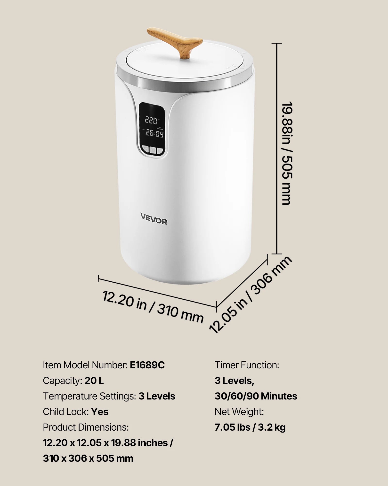 - Safety and build: child lock, a U-shaped high-temperature indicator light, and V0 flame-retardant materials; compact countertop footprint and weight of 7.05 lbs (12.20 x 12.05 x 19.88 in).